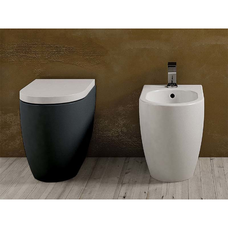 CIELO SMILE 53 SMVASTR Бифункциональный напольный унитаз с адаптируемым выпуском в комплекте с крепежами. Функциональный бачок 4,5л. Размеры 35x54x42h, цвет Basalto. Представленная модель унитаза существует в различных цветовых решениях. Крышка сиденье покупается отдельно.