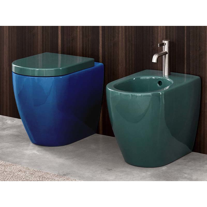 CIELO SMILE 53 SMVASTR Бифункциональный напольный унитаз с адаптируемым выпуском в комплекте с крепежами. Функциональный бачок 4,5л. Размеры 35x54x42h, цвет Oltremare. Представленная модель унитаза существует в различных цветовых решениях. Крышка сиденье покупается отдельно.