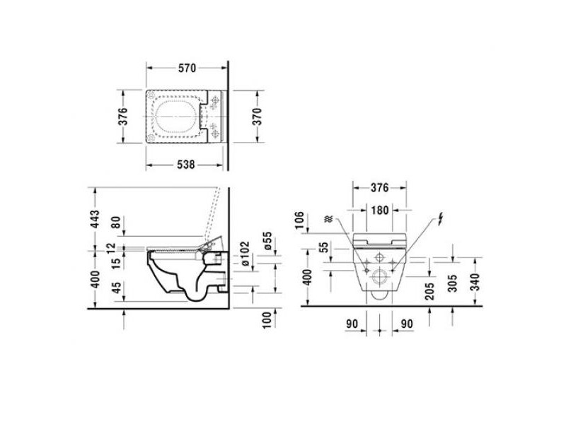 Унитаз подвесной безободковый DURAVIT VERO AIR 252559 00 00, без смывного края, с вертикальным смывом, включая крепление Durafix, только в сочетании с SensoWash, включая компоненты для SensoWash со скрытым подключением, размер 37x57 см, цвет белый.