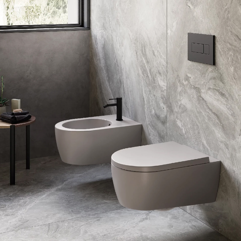 Унитаз подвесной безободковый HATRIA FUSION A0Y1CC07, без сиденья, без боковых отверстий, в комплекте с креплениями. Размер 35.5х54 см, цвет Cemento. Крышка сидение приобретается отдельно.