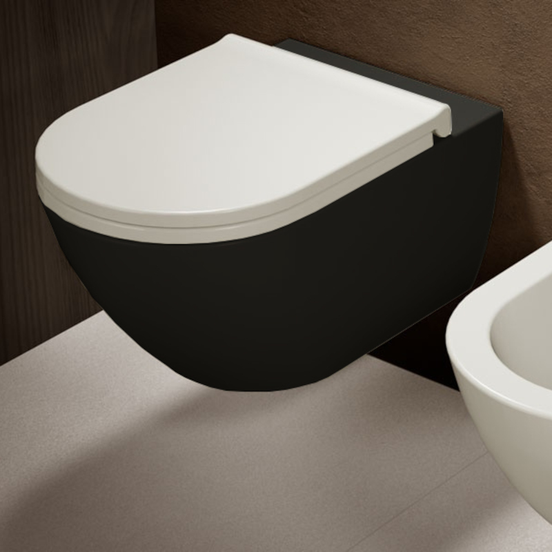 CIELO ENJOY EJVS Унитаз подвесной с крепежами в комплекте.Бачок 4,5л, совместим с Combifix. Размеры 35x53x26,5h, цвет Basalto. Представленная модель унитаза существует в различных цветовых решениях.