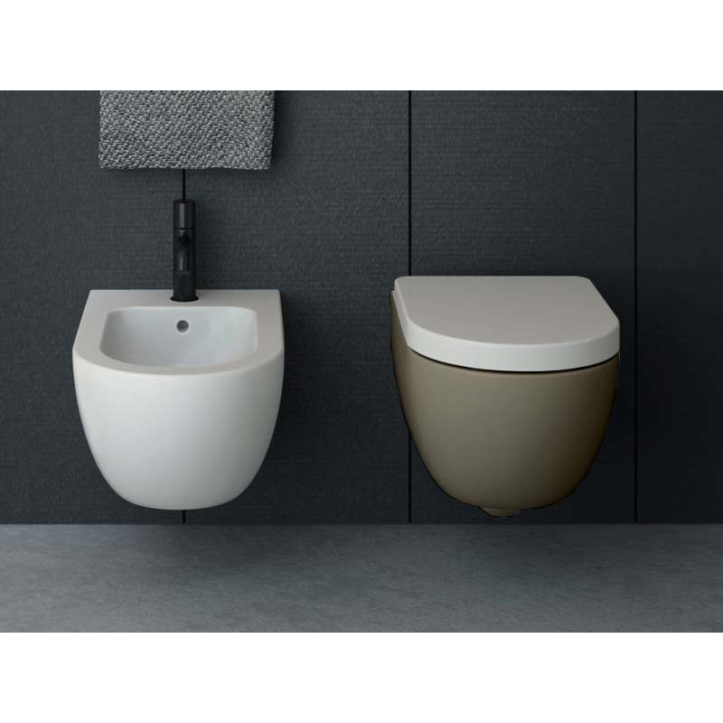 CIELO ENJOY EJVSKR Унитаз подвесной в комплекте с крепежами, без ободка. Бачок 4,5л, совместим с Combifix. Размеры 35x48x26,5h, цвет Avena. Крышка сиденье покупается отдельно. Представленная модель унитаза существует в различных цветовых решениях.