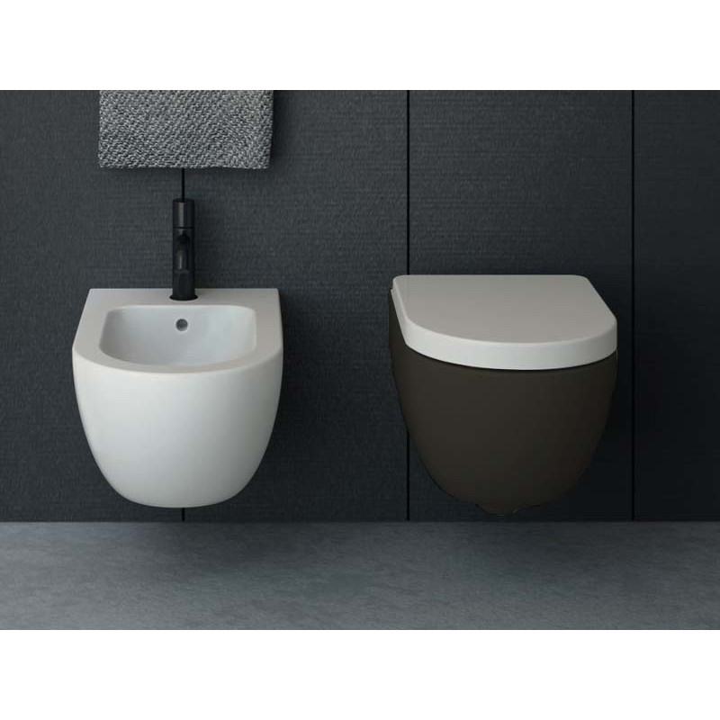 CIELO ENJOY EJVSKR Унитаз подвесной в комплекте с крепежами, без ободка. Бачок 4,5л, совместим с Combifix. Размеры 35x48x26,5h, цвет Lavagna. Крышка сиденье покупается отдельно. Представленная модель унитаза существует в различных цветовых решениях.