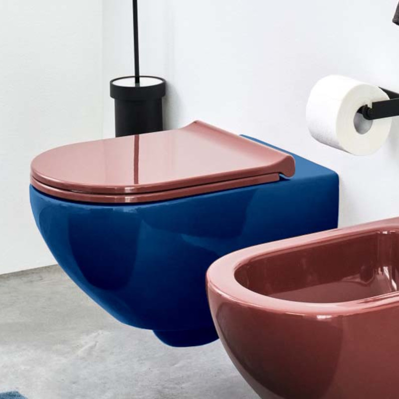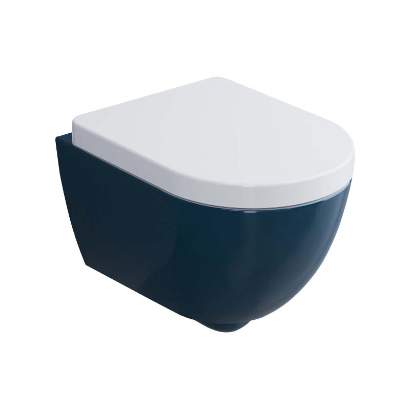 CIELO ENJOY EJVSKR Унитаз подвесной в комплекте с крепежами, без ободка. Бачок 4,5л, совместим с Combifix. Размеры 35x48x26,5h, цвет Oltremare. Крышка сиденье покупается отдельно. Представленная модель унитаза существует в различных цветовых решениях.