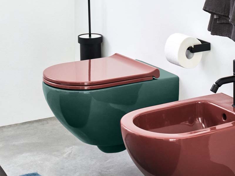 CIELO ENJOY EJVSKR Унитаз подвесной в комплекте с крепежами, без ободка. Бачок 4,5л, совместим с Combifix. Размеры 35x48x26,5h, цвет Smeraldo. Крышка сиденье покупается отдельно. Представленная модель унитаза существует в различных цветовых решениях.