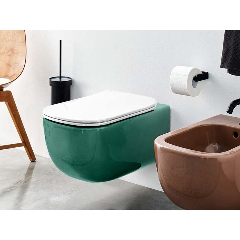 CIELO ERA RIMLESS 2,0 ERVSK Унитаз подвесной в комплекте с крепежами, Бачок 4,5л, без ободка. Совместим с combifix. Размеры 36.5x53x37h, цвет Smeraldo. Представленная модель унитаза существует в различных цветовых решениях. Крышка сиденье покупается отдельно.