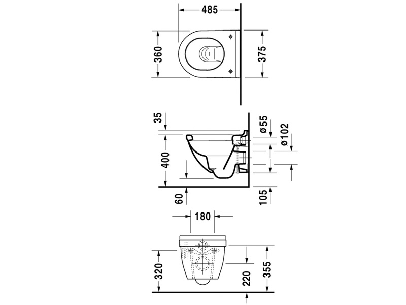 STARCK 3 Унитаз подвесной компакт, с вертикальным смывом, размер 36х48.5 см, цвет белый