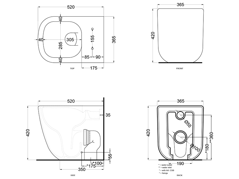 CIELO ERA ERVAK RIMLESS 2,0 Унитаз напольный в комплекте с крепежами, функциональный бачок 4,5л, без ободка. Слив в стену при помощи технического колена трансформируется на слив в пол. Размеры 36.5x52x42h, цвет Anemone. Представленная модель унитаза существует в различных цветовых решениях. Крышка сиденье покупается отдельно.