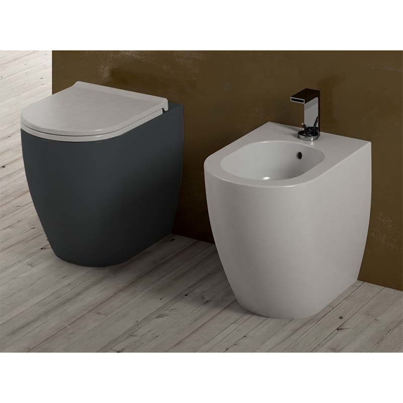 CIELO SMILE SMVAPR Унитаз напольный MINI со сливом в стену и с крепежами в комплекте. Бачок 4,5л. Размеры 35x48x42h, цвет Basalto. Представленная модель унитаза существует в различных цветовых решениях. Крышка сиденье покупается отдельно.