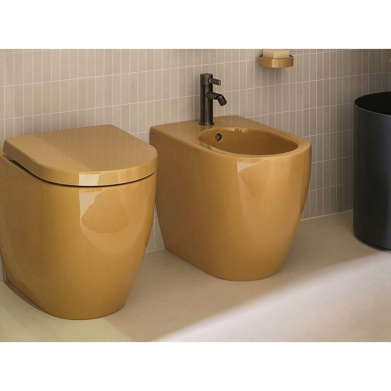 CIELO SMILE 53 SMVAS Унитаз напольный в комплекте с крепежами, функциональный бачок 4,5л. Слив в стену при помощи технического колена трансформируется на слив в пол. Размеры 34x53x42h, цвет Anemone. Крышка сиденье покупается отдельно. Представленная модель унитаза существует в различных цветовых решениях