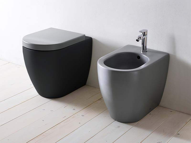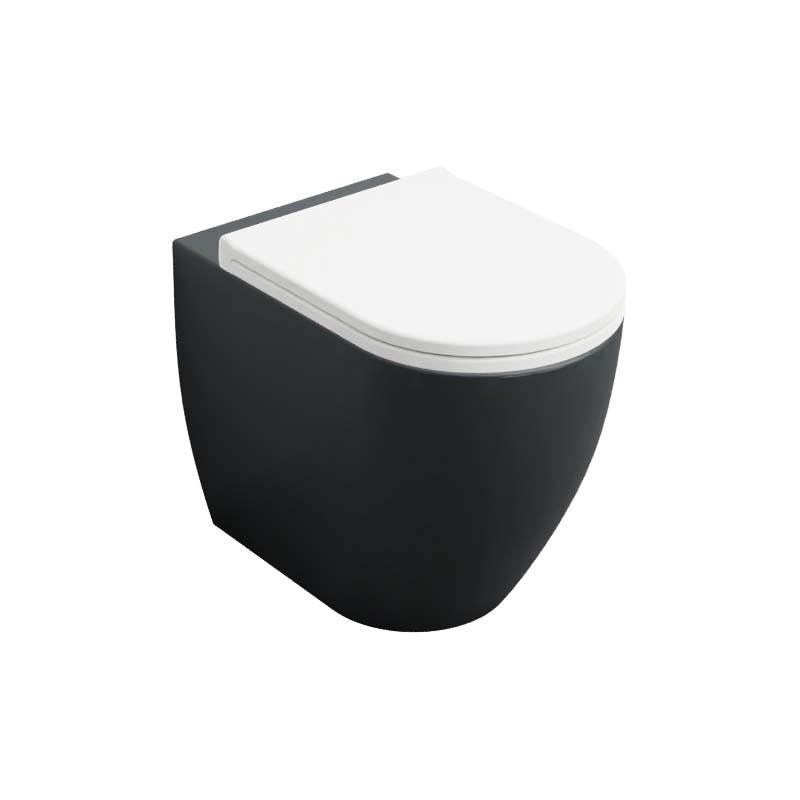 CIELO SMILE 53 SMVAS Унитаз напольный в комплекте с крепежами, функциональный бачок 4,5л. Слив в стену при помощи технического колена трансформируется на слив в пол. Размеры 34x53x42h, цвет Basalto. Крышка сиденье покупается отдельно. Представленная модель унитаза существует в различных цветовых решениях