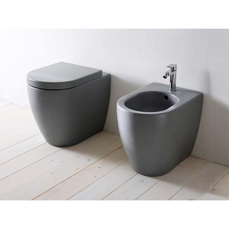 CIELO SMILE 53 SMVAS Унитаз напольный в комплекте с крепежами, функциональный бачок 4,5л. Слив в стену при помощи технического колена трансформируется на слив в пол. Размеры 34x53x42h, цвет Brina. Крышка сиденье покупается отдельно. Представленная модель унитаза существует в различных цветовых решениях