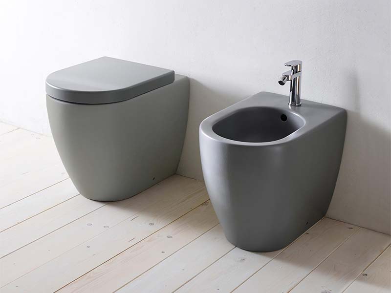 CIELO SMILE 53 SMVAS Унитаз напольный в комплекте с крепежами, функциональный бачок 4,5л. Слив в стену при помощи технического колена трансформируется на слив в пол. Размеры 34x53x42h, цвет Pomice. Крышка сиденье покупается отдельно. Представленная модель унитаза существует в различных цветовых решениях