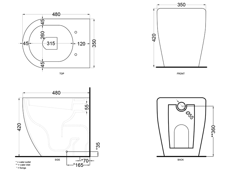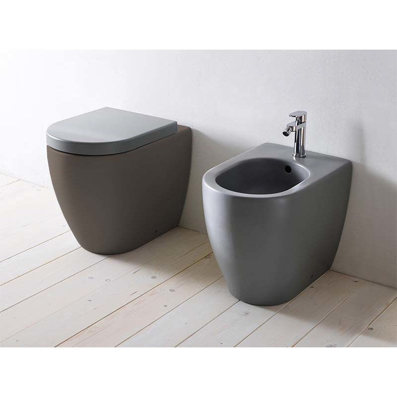 CIELO SMILE MINI 48 SMVASR Унитаз напольный со сливом в пол в комплекте с крепежами, бачок 4,5л. Размеры 35x48x42h, цвет arenaria. Крышка сиденье покупается отдельно. Представленная модель унитаза существует в различных цветовых решениях