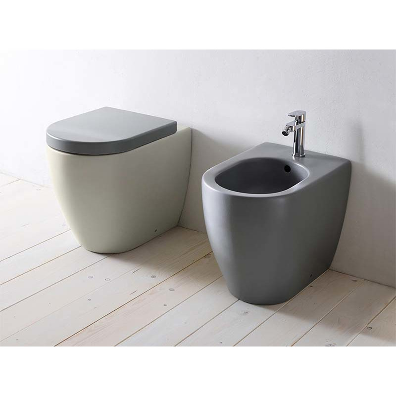 CIELO SMILE MINI 48 SMVASR Унитаз напольный со сливом в пол в комплекте с крепежами, бачок 4,5л. Размеры 35x48x42h, цвет gloss black. Крышка сиденье покупается отдельно. Представленная модель унитаза существует в различных цветовых решениях