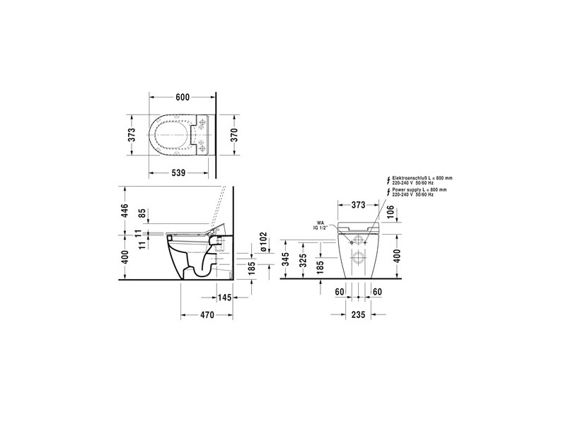 Унитаз приставной DURAVIT ME BY STARCK 216959 00 00 для SensoWash, с вертикальным смывом, включая крепление, сток горизонтальный, включая компоненты для SensoWash со скрытым подключением, размер 37х60 см, цвет белый.