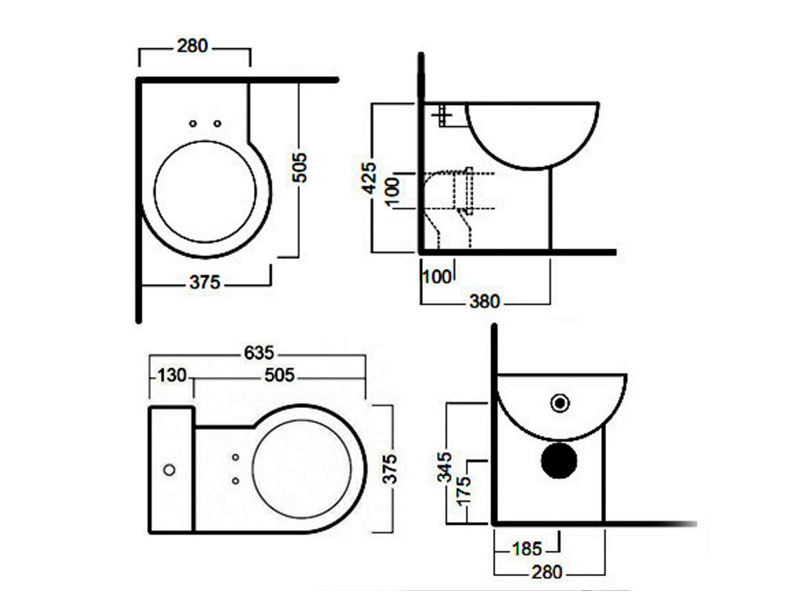 Унитаз напольный угловой HATRIA YOU&ME YXZ601, размер 37.5х50.5 см, цвет белый. Устанавливается вплотную к стене в левый угол, с напольным керамическим бачком.