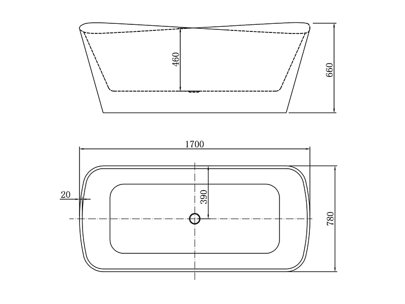 Ванна акриловая отдельностоящая со сливом-переливом, цвет белый глянцевый