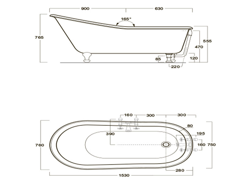 Ванна чугунная SIMAS ВАННЫ 30100 эмалированная изнутри и снаружи, размер 153х76х76.5 см, цвет белый.