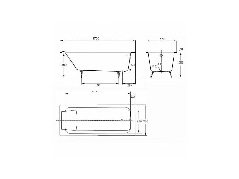 Чугунная ванна E2948-00 PARALLEL от французского производителя JACOB DELAFON имеет габариты 170х70 х 45 см. Цвет: белый .