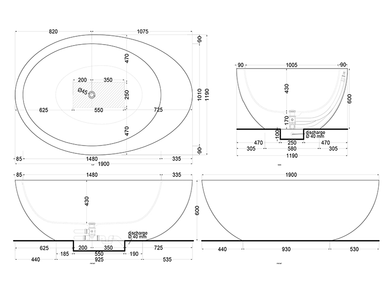 CIALO LE GIARE LGBAT Отдельностоящая ванна из материала Livingtec со скрытым переливом. Размеры:190x119x60h см. Цвет Matt White.