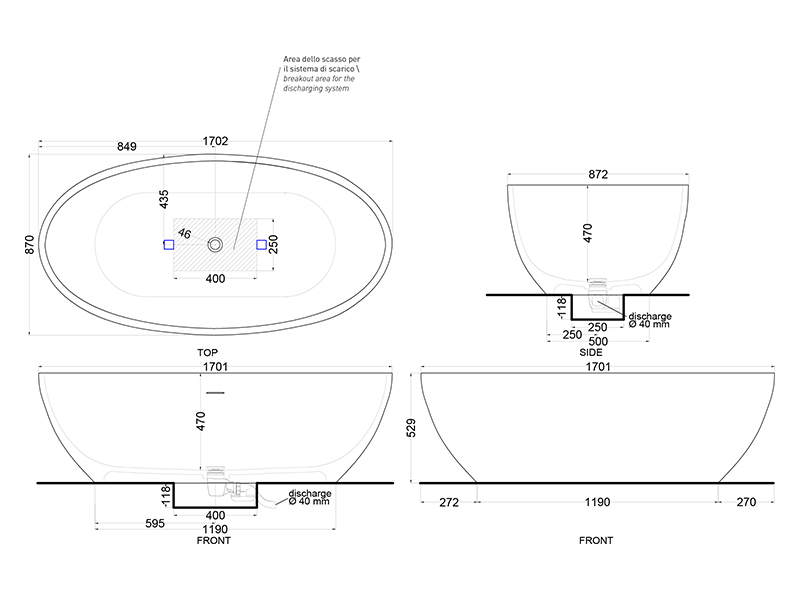 CIELO SHUI COMFORT SHCOBAT Ванна отдельностоящая свободной установки с переливом из материала Livingtec. Размеры: 87x170x 53h см. Цвет Matt White