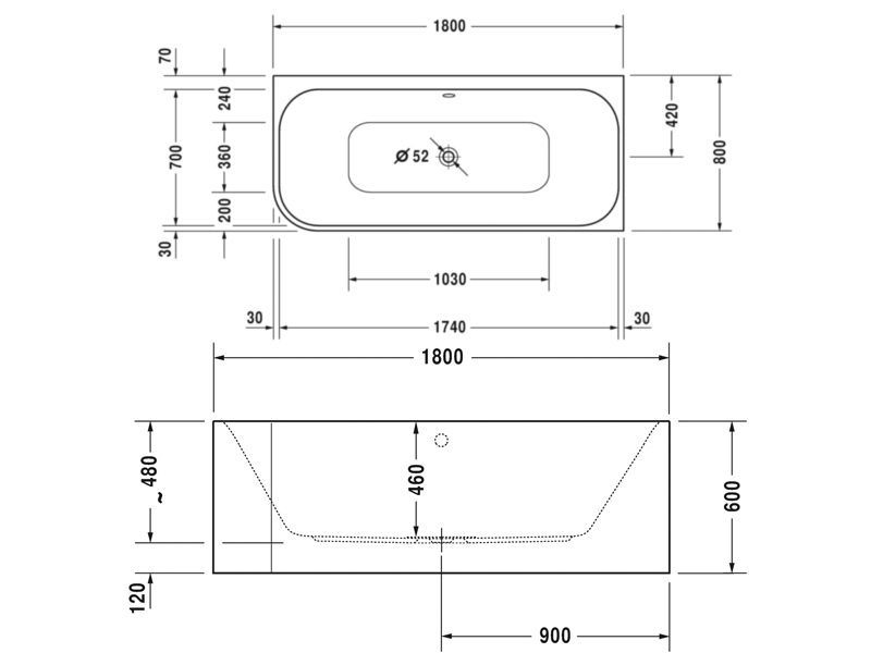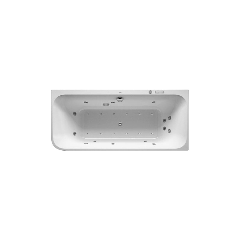 HAPPY D.2 Ванна 180x80,угол-справа, с двумя наклонами для спины, со интегрированной акриловой панелью и ножками, со сливом-переливом, Combi-System P, цвет белый