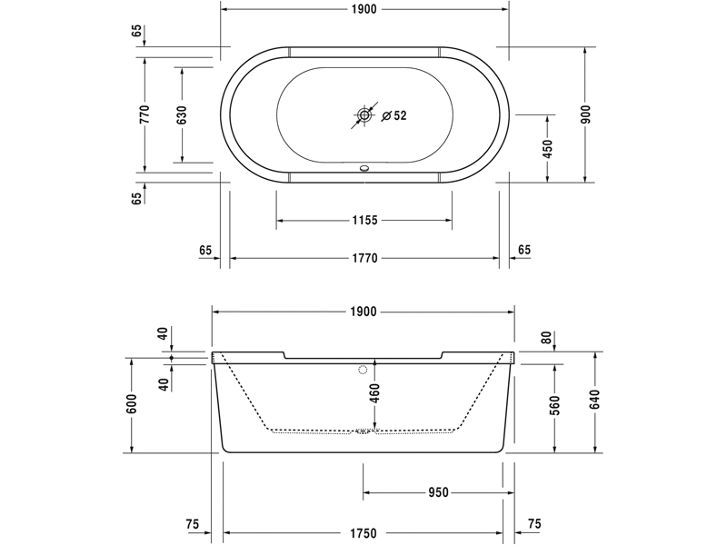 STARCK Ванна гидромассажная, отдельно стоящая с панелью и ножками, сливом-переливом, овальная, система JS, размер 190x90х64 см, 5 мм санитарный акрил, цвет белый