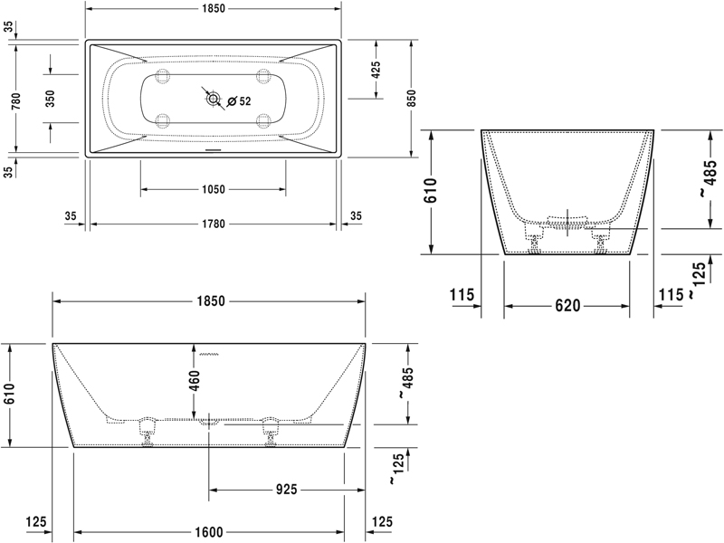 Ванна отдельностоящая, размер 185 x 85 х 61 см, материал Durasolid, цвет белый