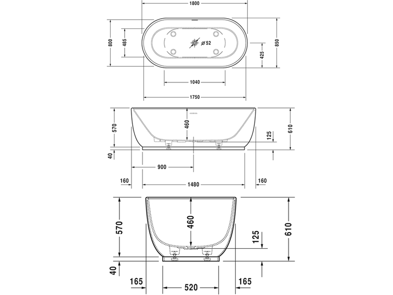 Ванна овальная, отдельностоящая, размер 180 x 85 х 61 см, материал Durasolid, цвет белый