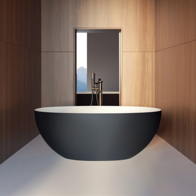 Ванна отдельностоящая TREESSE VERA V065BL, профиль которой представляет собой идеальное сечение круга: эстетически сбалансированное решение, которое легко интегрируется в различные стили ванных комнат благодаря широкому выбору доступных размеров. Также подходит для небольших ванных комнат благодаря своим компактным размерам (150x72x55см). Ванна из искусственного камня (Soild Surface); белого глянцевого цвета; слив-перелив входит в комплект. Данная модель может быть изготовлена как двухцветная под заказ.
