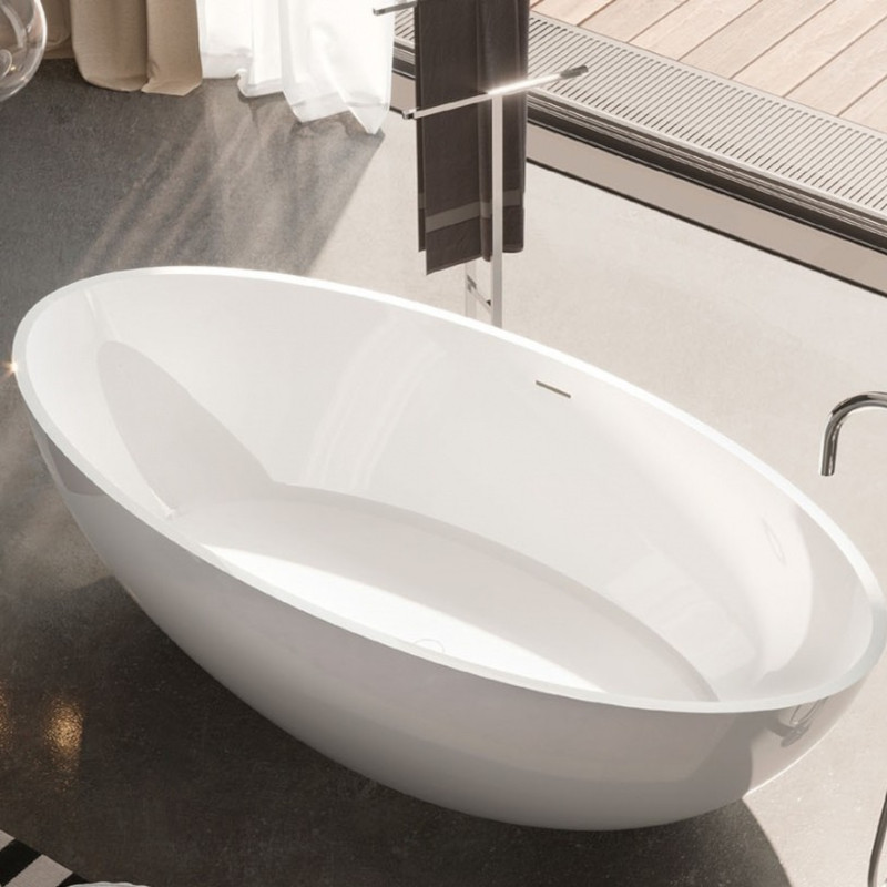 CAREZZA Ванна отдельностоящая в комплекте со сливом переливом, материал Solid, размер 180x85x52H см, цвет белый глянец