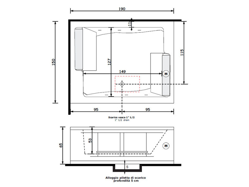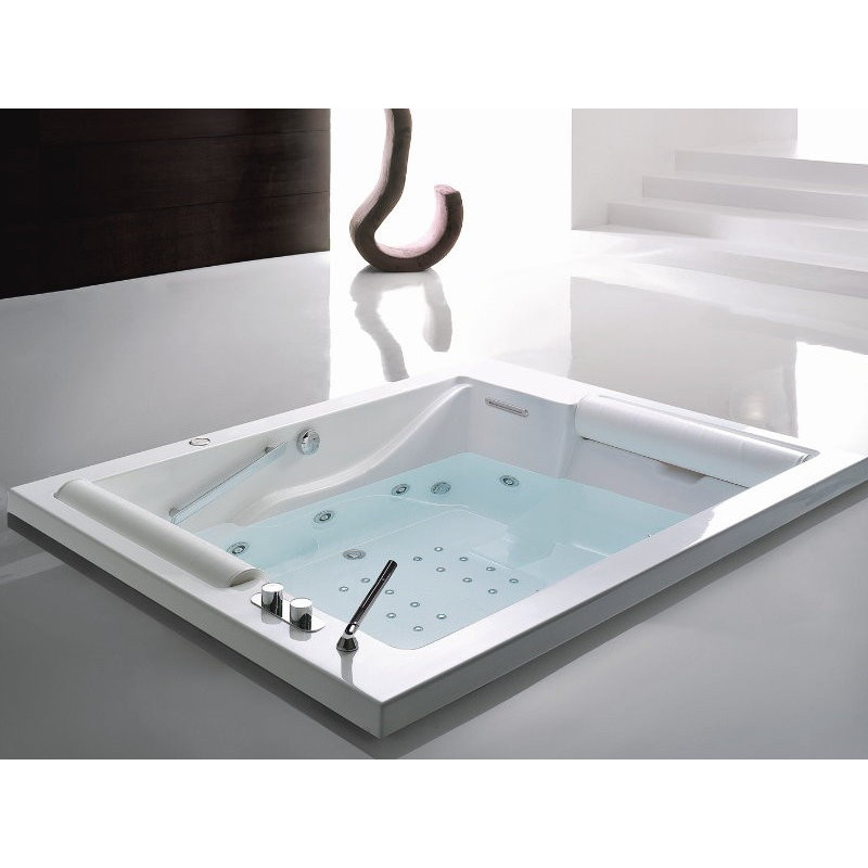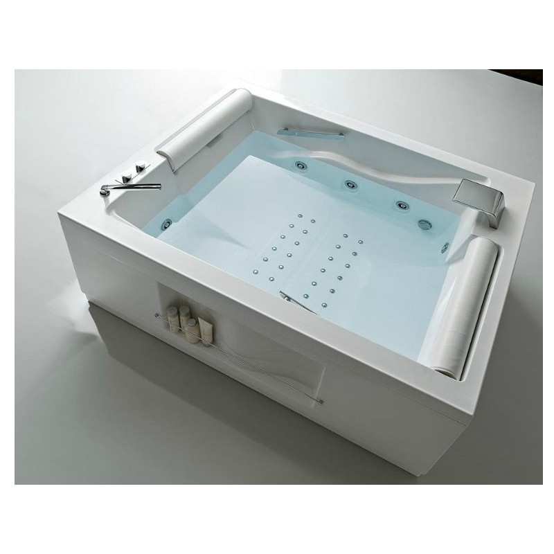 Ванна с гидромассажем TREESSE BIS V529E/V529F/V529D/MIX/BIG и аэромассажем, цифровая система, система дезинфекции, размер 150x190 см, комплектация DWA, 2 подголовника белого цвета, 2 ручки, уровневый датчик, смеситель на борт ванны MIX, большой строенный каскад, фронтальная и боковая панели, установка 1(SX), хром.
