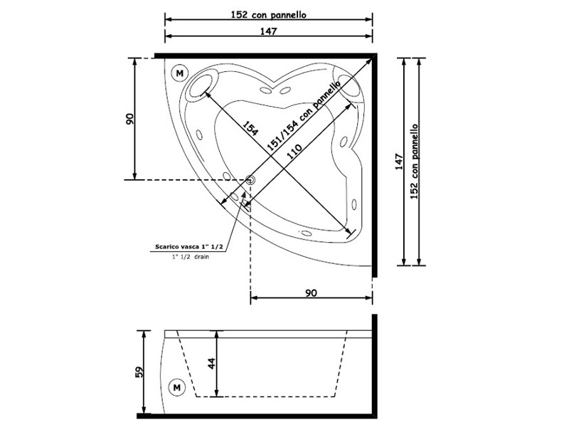 Ванна с гидромассажем TREESSE DAFNE V724E/V724F/BVP/MIX и аэромассажем, система дезинфекции, 2 подголовника, уровневый датчик, подводный светильник, комплектация DWA, со смесителем Mix и изливом BVP, бел/хром, с фронтальной панелью.