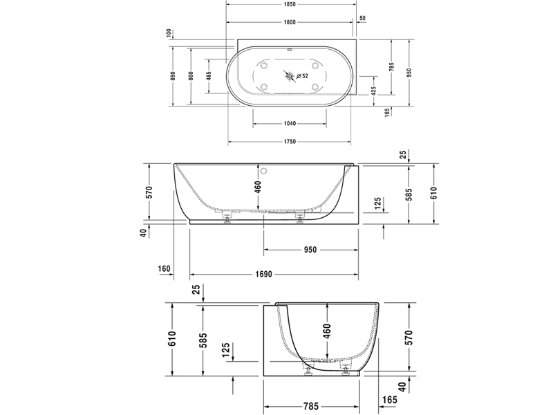 Ванна овальная, отдельностоящая, размер 185 x 95 х 61 см, материал Durasolid, цвет белый