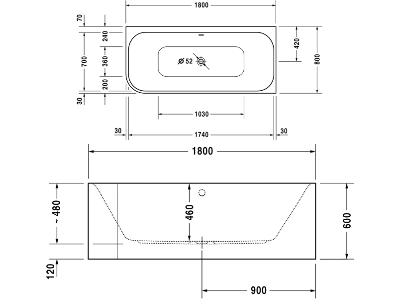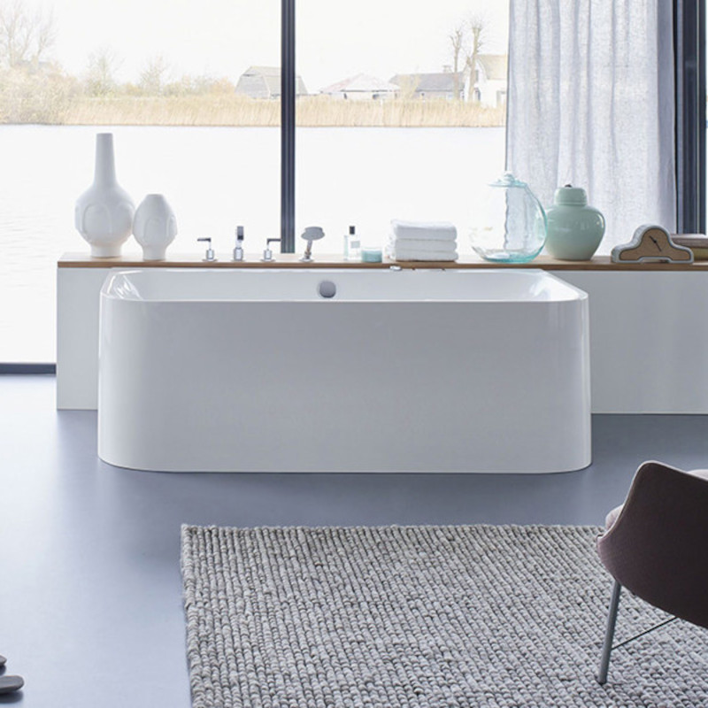 HAPPY D.2 Ванна с углом справа, с двумя наклонами для спины, с интегрированной акриловой панелью и ножками, цвет белый