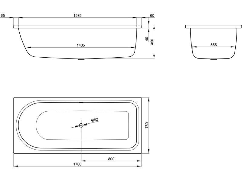 BETTEOCEAN ванна встраиваемая, сторона ног справа, перелив сзади 170x75x45Н см, цвет - белый, с покрытием BetteGlaze Plus