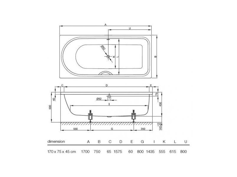 Ванна встраиваемая BETTE BETTEOCEAN 8855-000, сторона ног справа, перелив спереди, размер 170x75x45 см, цвет - белый. Ножки для ванной и слив-перелив приобретаются отдельно.