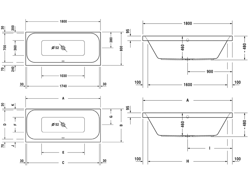 HAPPY D.2 Ванна dвстраиваемый вариант с 2-мя наклонами для спины 180х80 см бел. санитарный акрил 5мм
