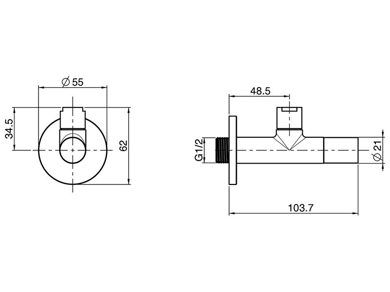 Вентиль, слив 1/2" x 1/2", нержавеющая сталь