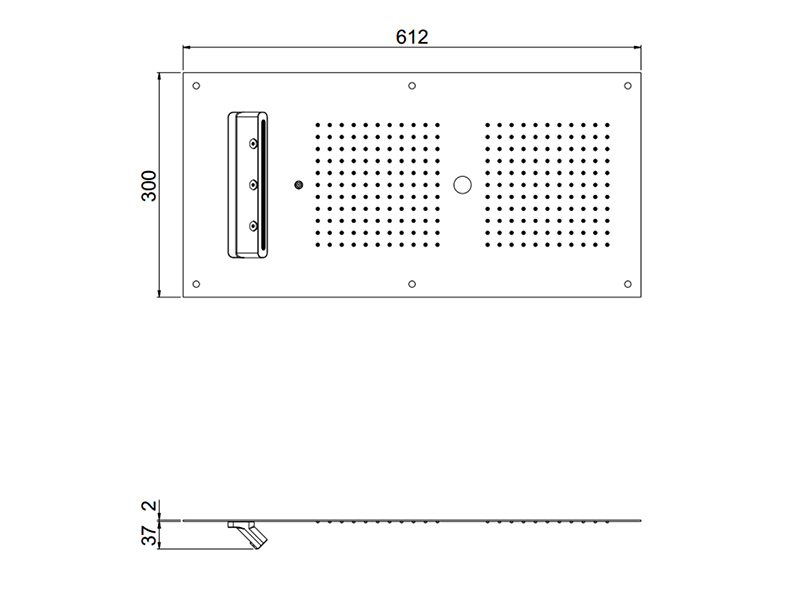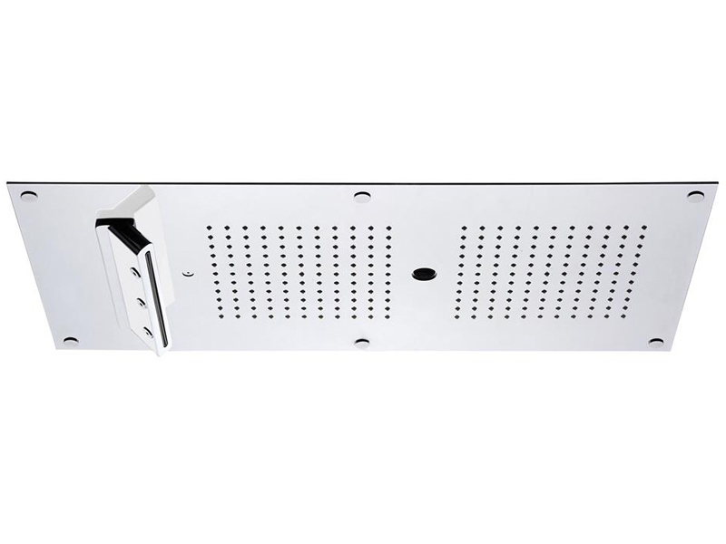 CARIMALI MYDREAM 23073X Верхний душ потолочный, скрытого монтажа. Размер 600X300 mm. Распыленная струя с 242 отверстиями, водяная пыль 1 струя, водопад с регулируемой струей 5 с возможностью проверки и техобслуживания. Защита от известкового налета, 2 сменных картриджа, минимальный расход в стандартном исполнении 10 л/мин, ограничитель напора на 1 кв.бар, доступна версия с распыленной струей ECO. Цвет Хром