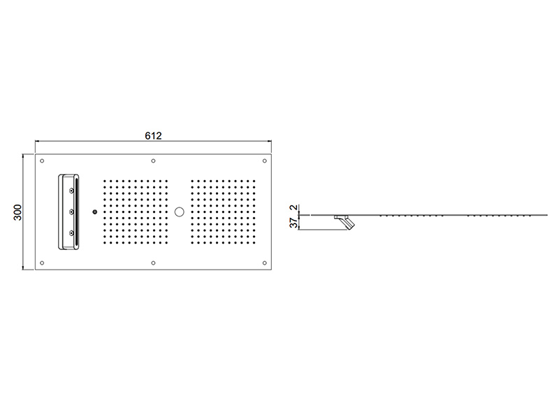 CARIMALI MYDREAM 23073XN/S-CRX Верхний душ потолочный, скрытого монтажа. Размер 600X300 mm. Распыленная струя с 242 отверстиями, хромотерапия, 1 направленный светильник RGB-светодиоды, водяная пыль 1 струя, водопад с регулируемой струей 5 с возможностью проверки и техобслуживания. Защита от известкового налета, 2 сменных картриджа, минимальный расход в стандартном исполнении 10 л/мин, ограничитель напора на 1 кв.бар, доступна версия с распыленной струей ECO. Цвет Хром