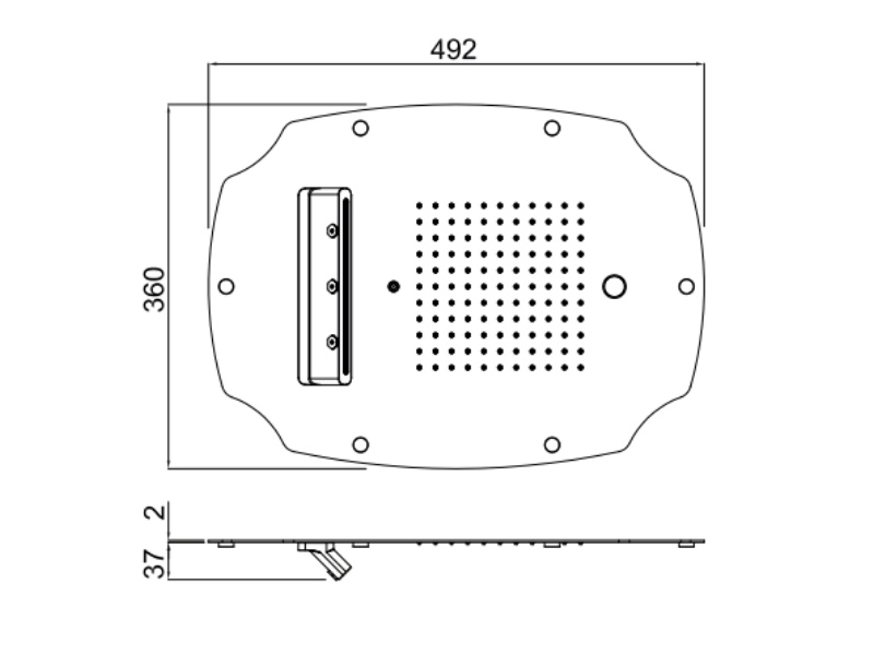 CARIMALI MYDREAM 23078X Верхний душ потолочный, многофункциональный, скрытого монтажа. Размер 500X400 mm. Хромотерапия, 1 направленный светильник RGB-светодиоды. Распыленная струя с 121 отверстиями. Водяная пыль 1 струя, Одиночный водопад, водопад с регулируемой струей 4 с возможностью проверки и техобслуживания. Защита от известкового налета, 1 сменный картридж. Минимальный расход 10 лит/ мин., ограничитель напора на 1 кв.бар. Цвет Хром