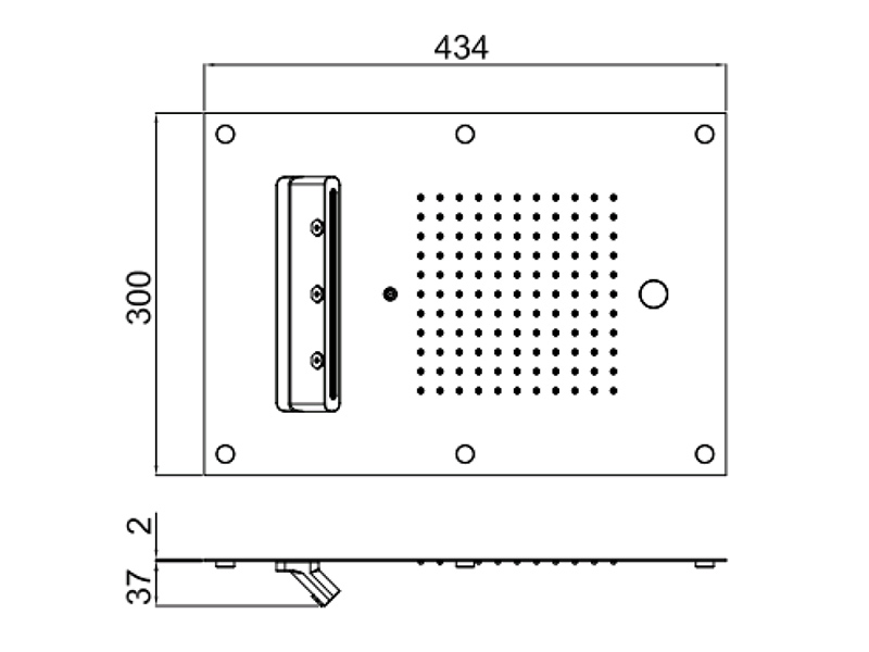 CARIMALI MYDREAM Quadro 23079X Верхний душ потолочный, многофункциональный, скрытого монтажа. Размер 450X300 mm. Распыленная струя с 121 отверстиями. Водяная пыль 1 струя, водопад с регулируемой струей 4. Система легкой очистки, силиконовые отверстия с защитой от известкового налета. С возможностью проверки и техобслуживания. , 1 сменный картридж. Минимальный расход 10 лит/ мин., ограничитель напора на 1 кв.бар. Цвет Хром
