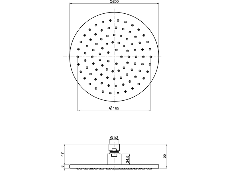 Верхний душ из латуни, диаметр 20 см, цвет сталь