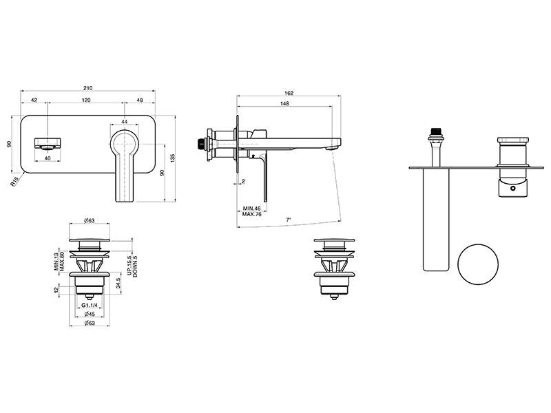 Накидка для встраиваемого смесителя для раковины FIMA CARLO FRATTINI MAST F3141WX5CR, излив 150 мм, донный клапан click-clack 1``1/4 с переливом, максимальная скорость потока при 3 бар: 5 л/м, водосберегающий картридж, внутренняя часть арт. F3600 заказывается отдельно, цвет хром