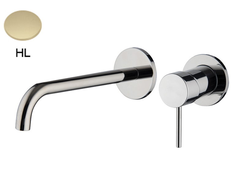 Внешняя часть смесителя для раковины настенного монтажа FIMA CARLO FRATTINI SPILLO UP F3051WLX9HL, излив 200мм, донный клапан click-clack 1``1/4 с переливом, цвет шампань. Встроенная часть арт. F3600W приобретается отдельно.