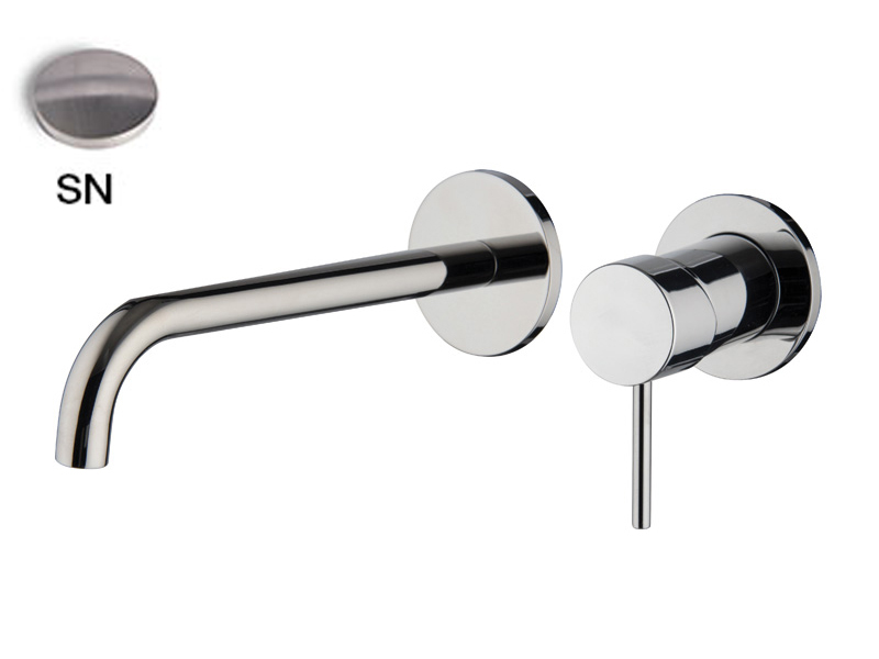 Внешняя часть смесителя для раковины настенного монтажа FIMA CARLO FRATTINI SPILLO UP F3051WLX9SN, излив 200мм, донный клапан click-clack 1``1/4 с переливом, цвет никель брашированный. Встроенная часть арт. F3600W приобретается отдельно.