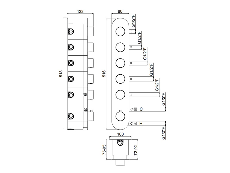 IlTondo Внешняя часть встраиваемого термостатического смесителя на 5 выходов, цвет хром