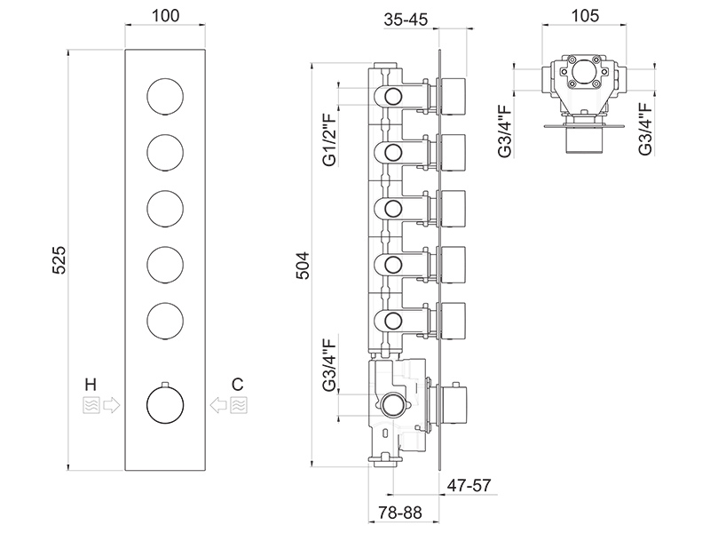 IlTondo Внешняя часть встраиваемого термостатического смесителя на 5 выходов, горизонтальный, цвет хром